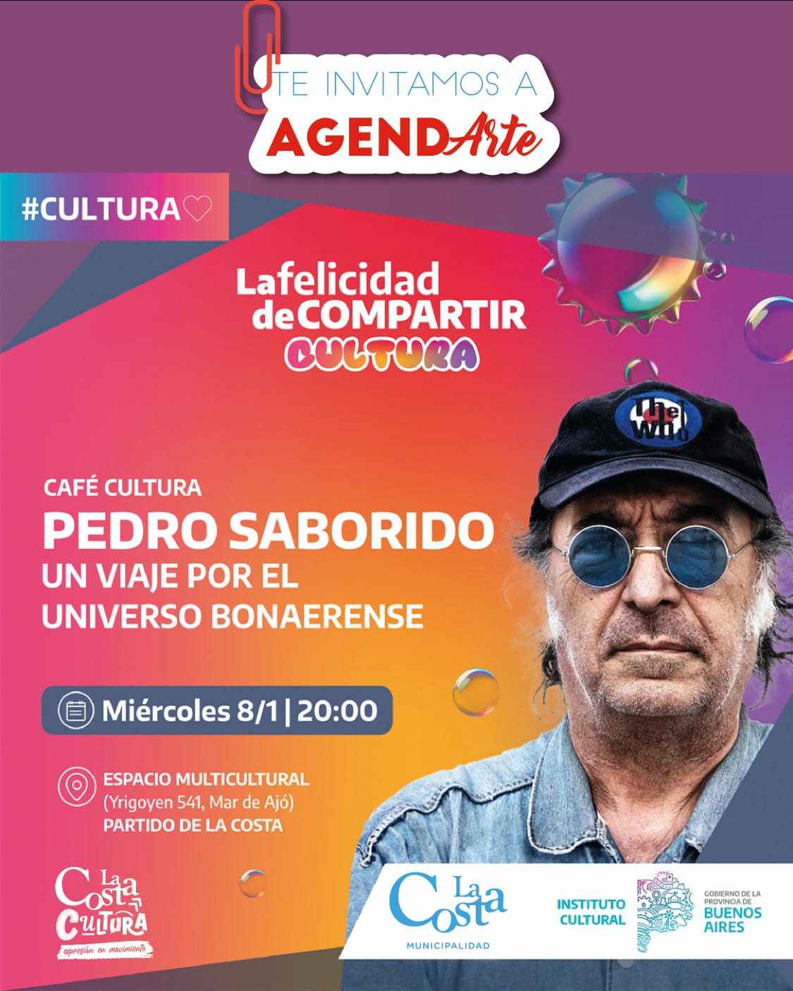 En esta oportunidad, desde las 20.00, Pedro Saborido se presentará en el Espacio Multicultural Mar de Ajó, ubicado en Yrigoyen y Sacconi.