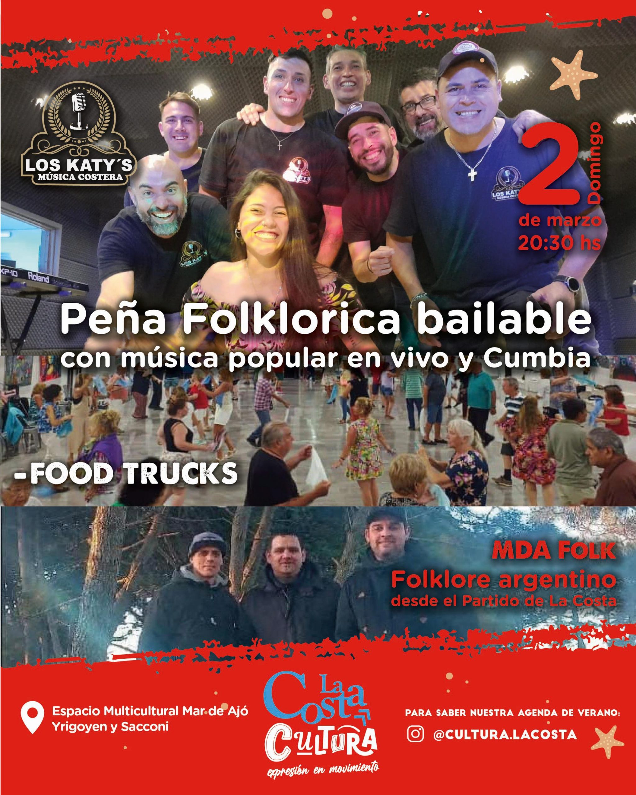 Música popular en vivo con folklore y cumbia. espacio de comida Food Trucks para disfrutar de una gran noche de fiesta.