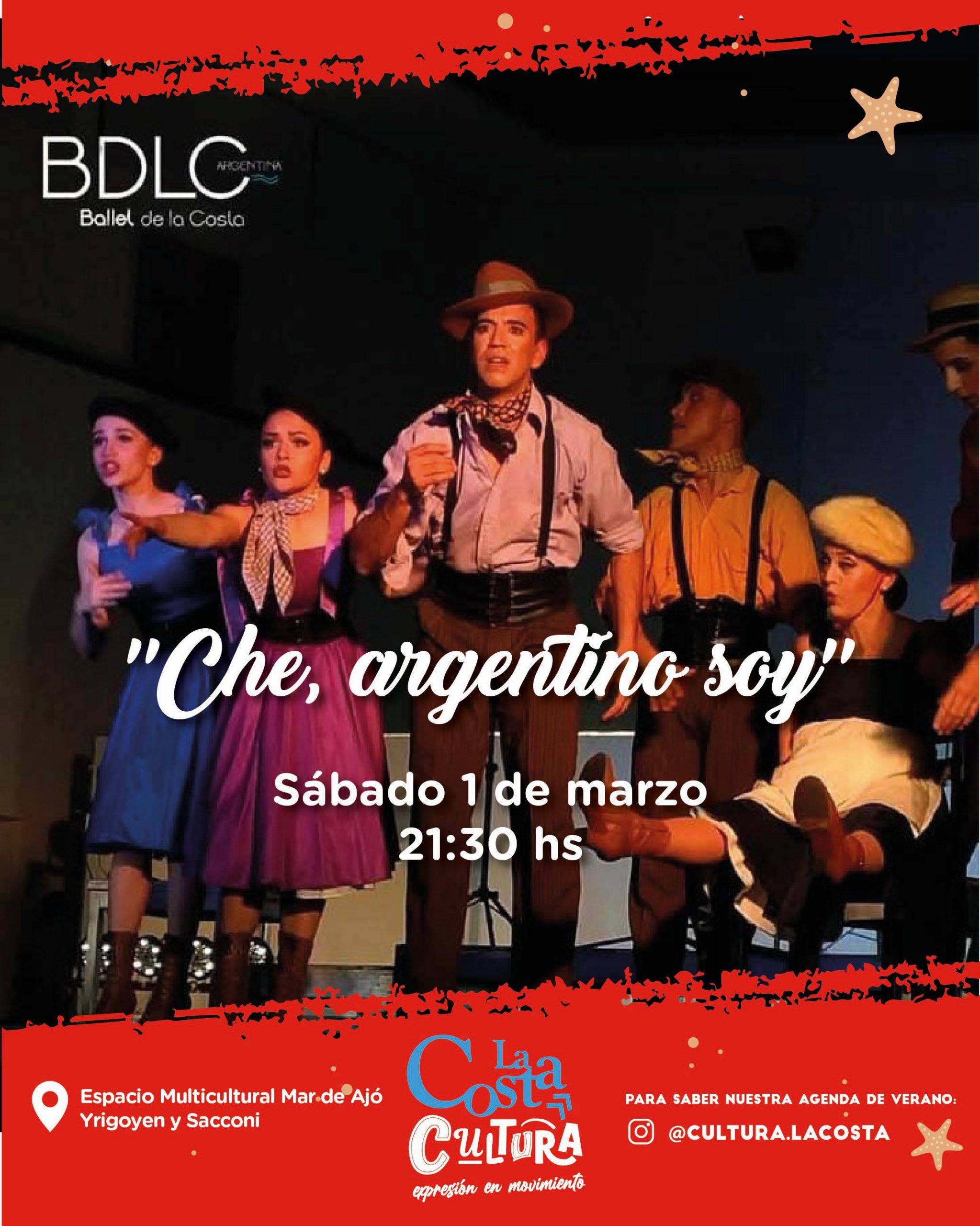 El Ballet Municipal de La Costa cerrará la temporada de verano con la presentación de su espectáculo “Che, argentino soy”, bajo la dirección artística y coreográfica de Julio Medina.