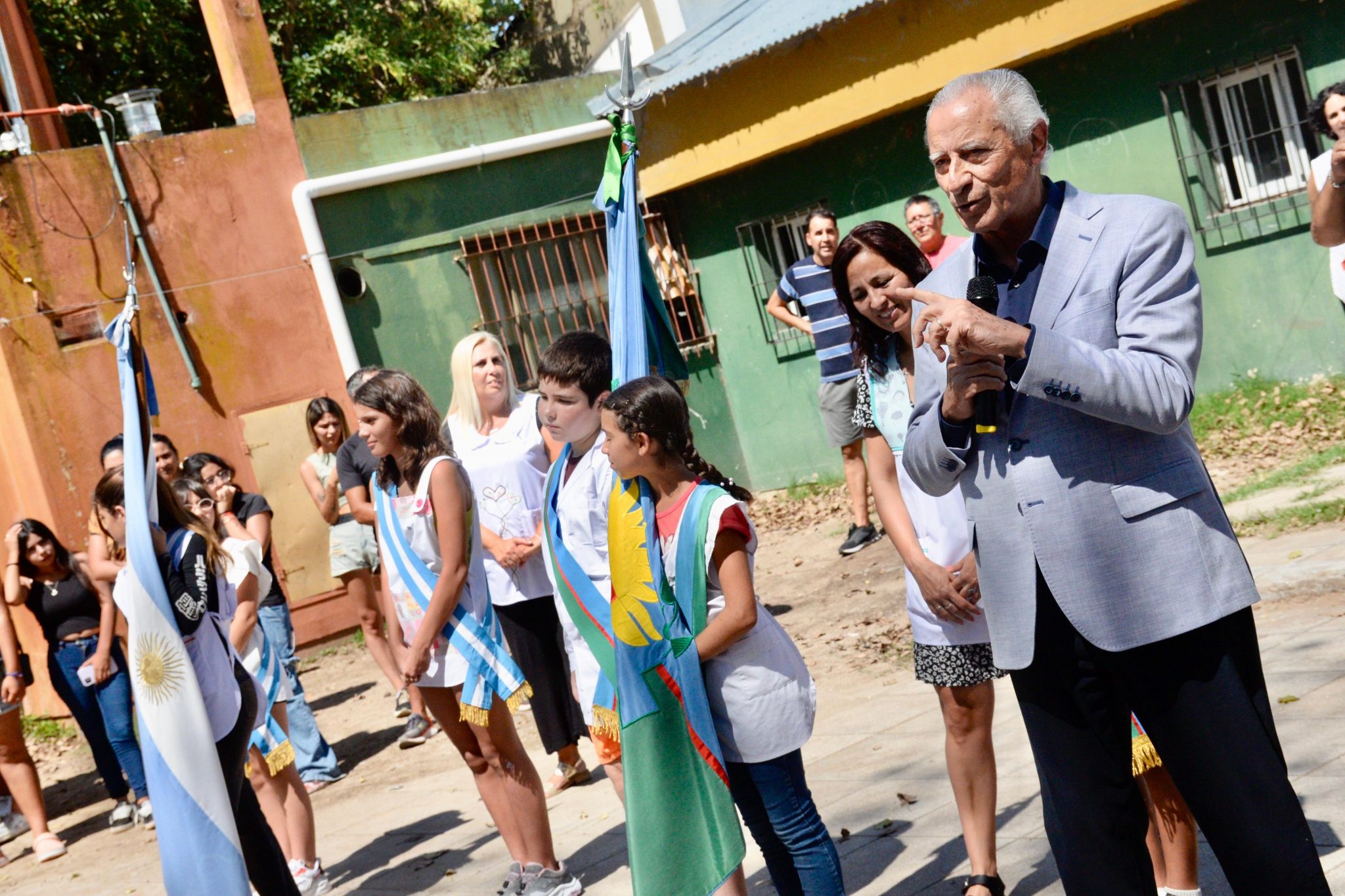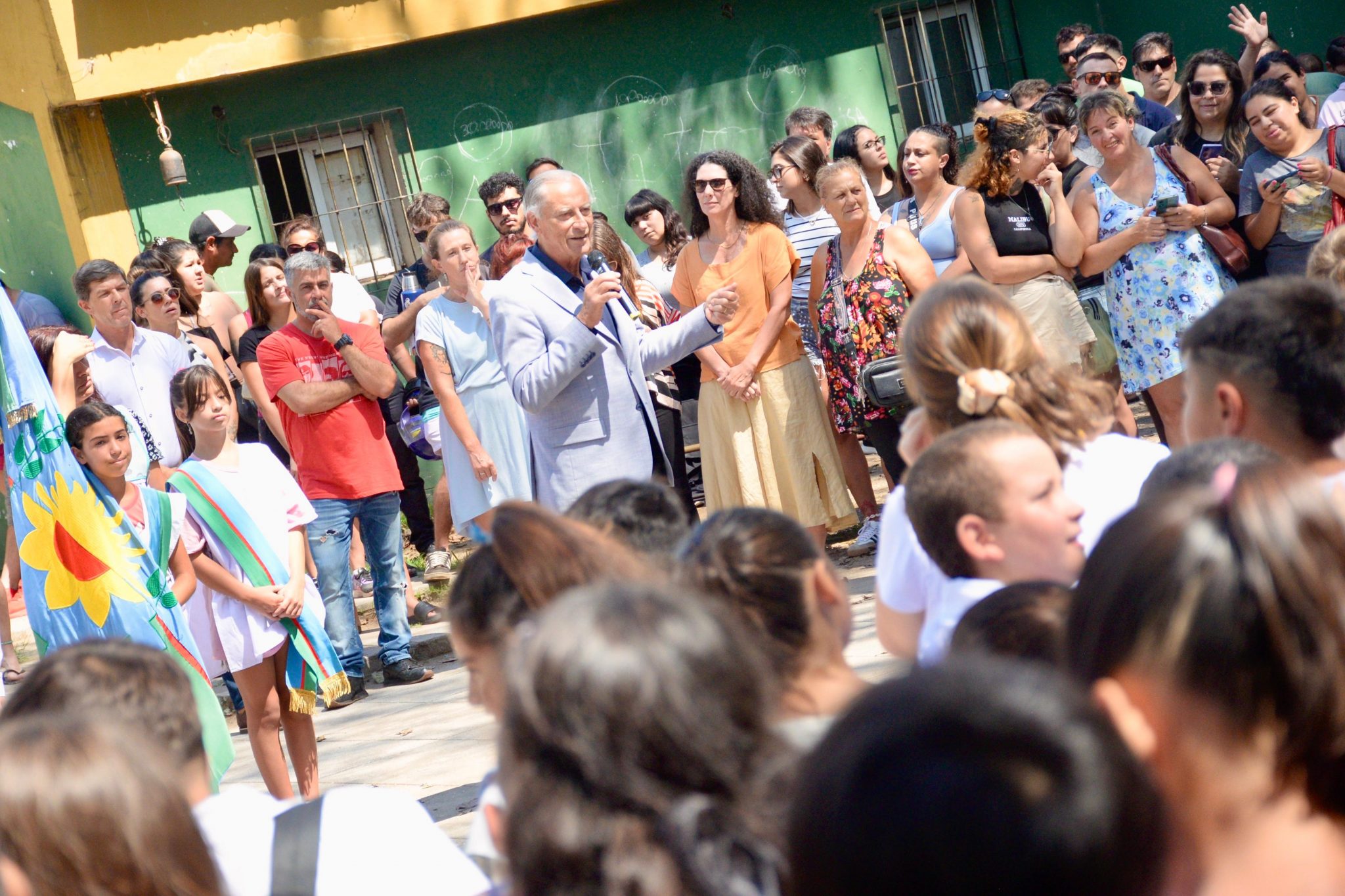 El intendente Juan de Jesús asistió al inicio del ciclo lectivo 2025 en la Escuela Primaria Nº 5 de Santa Teresita. El jefe comunal estuvo acompañado por la directora de la institución, Paola Aguirre; la secretaria de Educación, Amancay López; la directora provincial de Investigación, Inés Rodríguez Moyano y el inspector jefe distrital, Horacio Rossano, entre otros funcionarios municipales y provinciales.