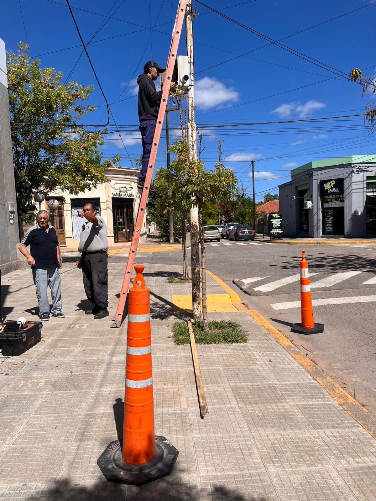 Desde la Secretaría de Seguridad estamos trabajando en el mantenimiento y colocación de cámaras de seguridad. Limpiamos y acondicionamos las instaladas y colocamos nuevas ampliando el corredor educativo y mejorando las condiciones del anillo de seguridad que funciona a través del Centro de Monitoreo Municipal.