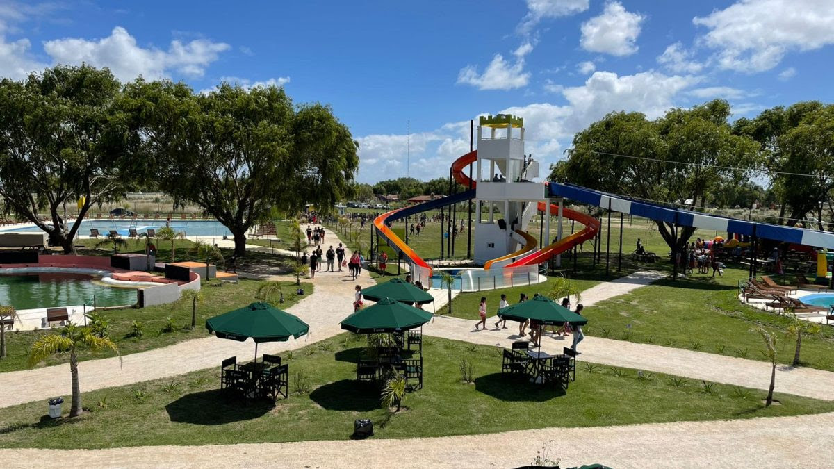 Parque acuático con piletas, toboganes, amplios espacios verdes y parrillas. Ofrece un entorno preparado para pasar el día en familia o con amigos, combinando diversión y descanso.