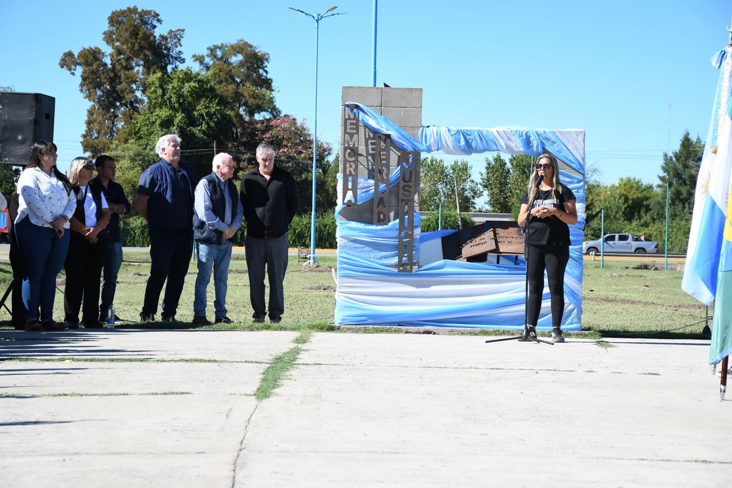 En el Monumento a la Memoria compartimos el acto protocolar en el marco del Día Nacional de la Memoria por la Verdad y la Justicia junto a las instituciones educativas de Navarro y autoridades locales. Hoy como cada 24 de marzo decimos Nunca Más a la violencia organizada en manos del Estado.