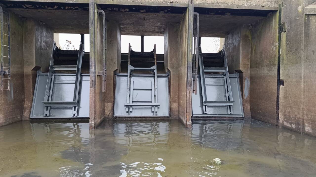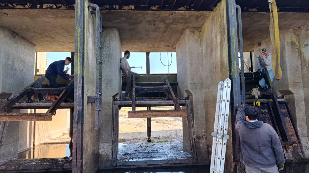 En un trabajo conjunto entre la Dirección Provincial de Hidráulica y la Municipalidad de Dolores se reparó la compuerta Hm 560 del Canal 1, margen derecha ubicada entre Puente de Ruta 2 y Puente La Vasca.